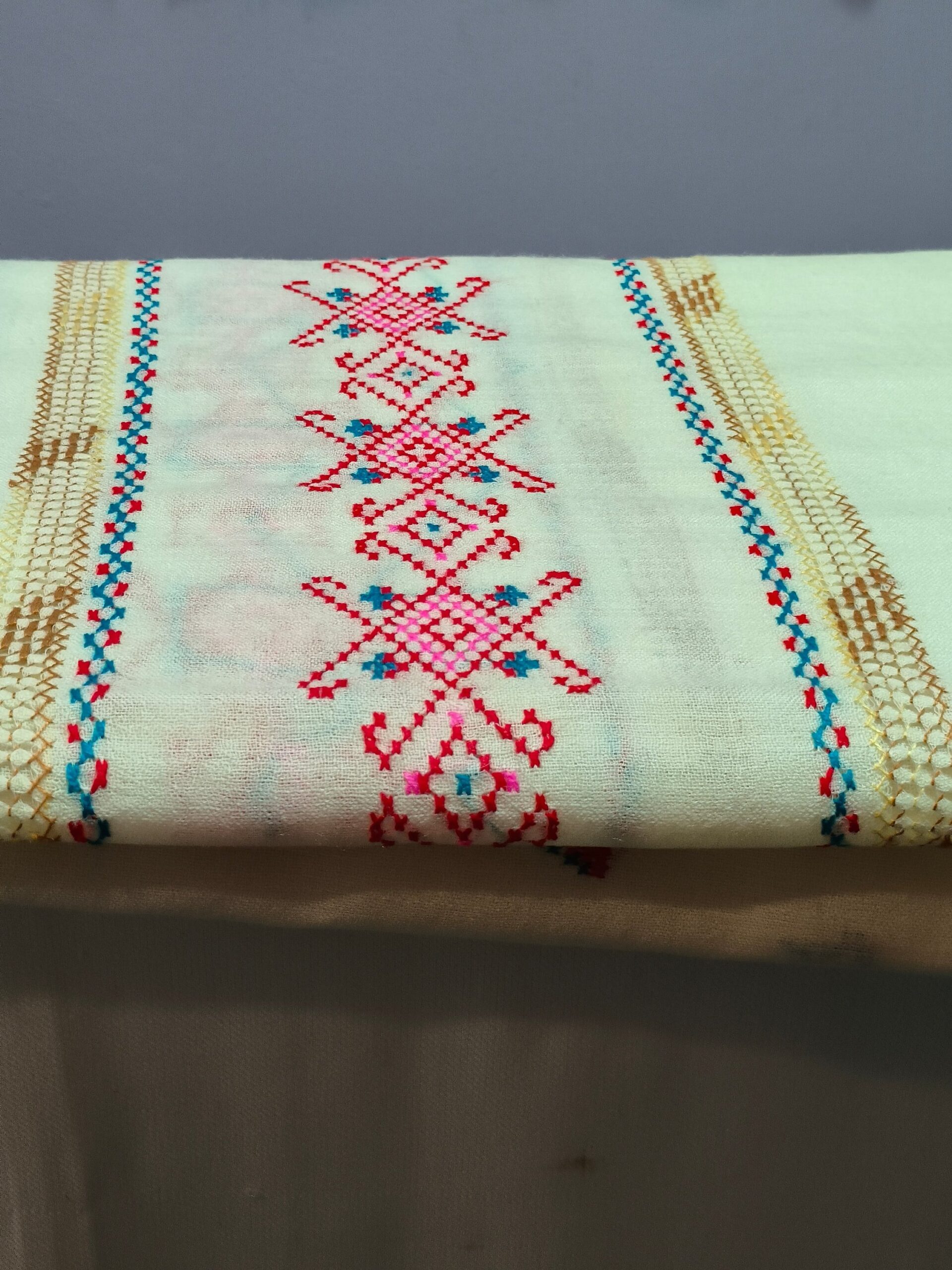 Be the first to review “Attractive offwhite Color Women Woolen Shawl with attractive handmade embroidery”