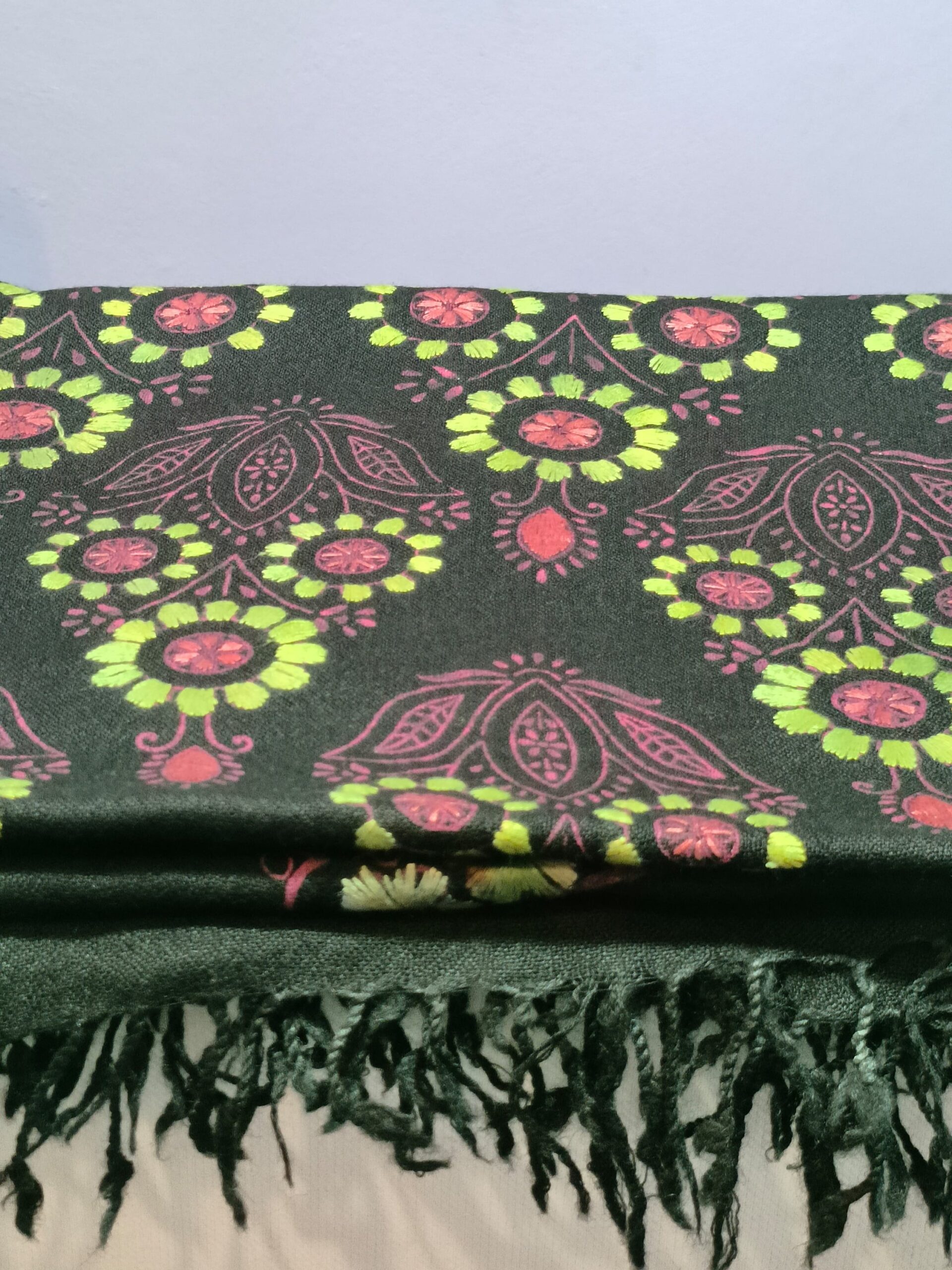 What makes this shawl truly special is its stunning karosha embroidery. This traditional technique adds depth and character, transforming a simple shawl into a piece of art. Each stitch is a testament to the artisans’ skills, ensuring that you not only wear a warm layer but also a symbol of cultural heritage. The intricate designs are a blend of artistry and craftsmanship, making this shawl a perfect accessory for any occasion.